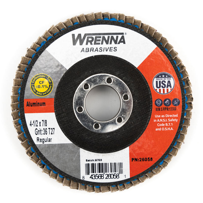 Wrenna Abrasives® 4-1/2" X 7/8" High Density Flap Disc Type 27 Aluminum