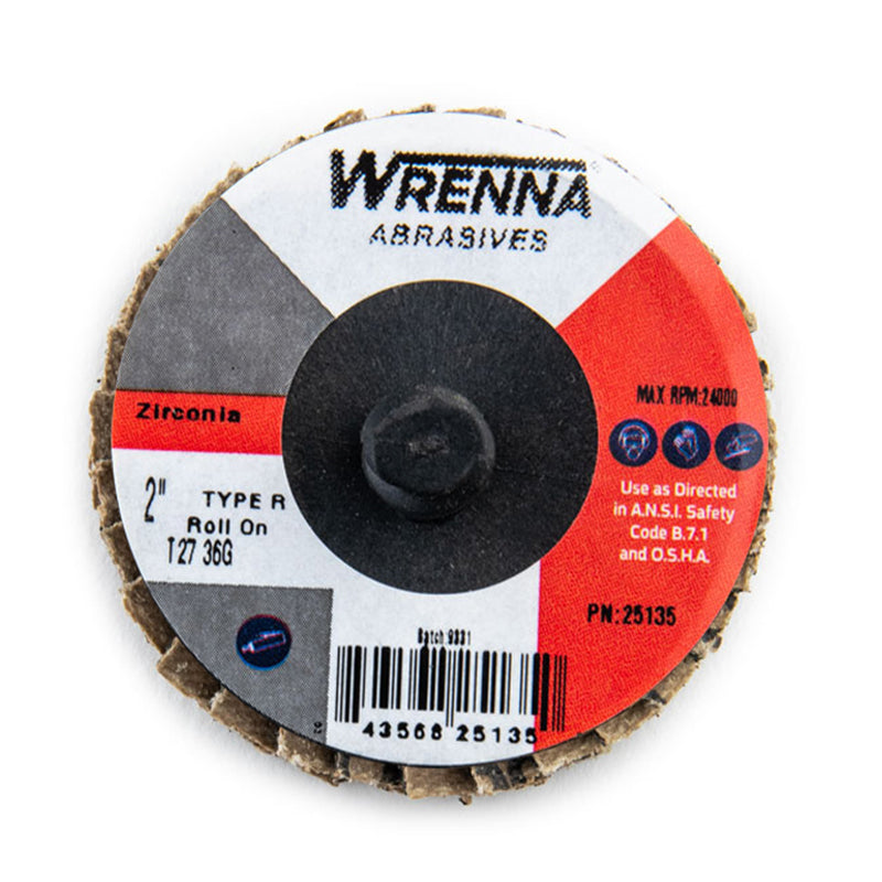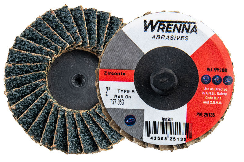 Wrenna Abrasives® 2" Roll-On 36 Grit Mini Flap Disc Type 27 Zirconia